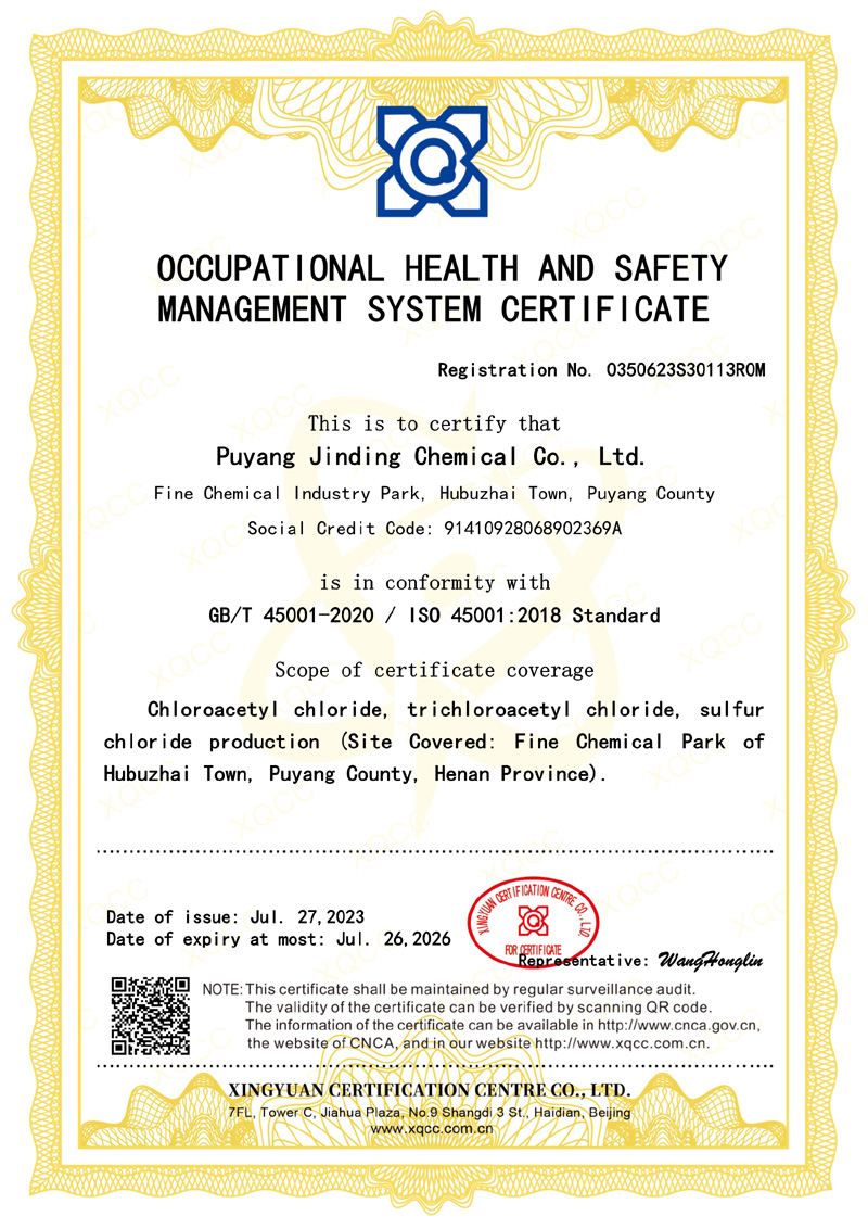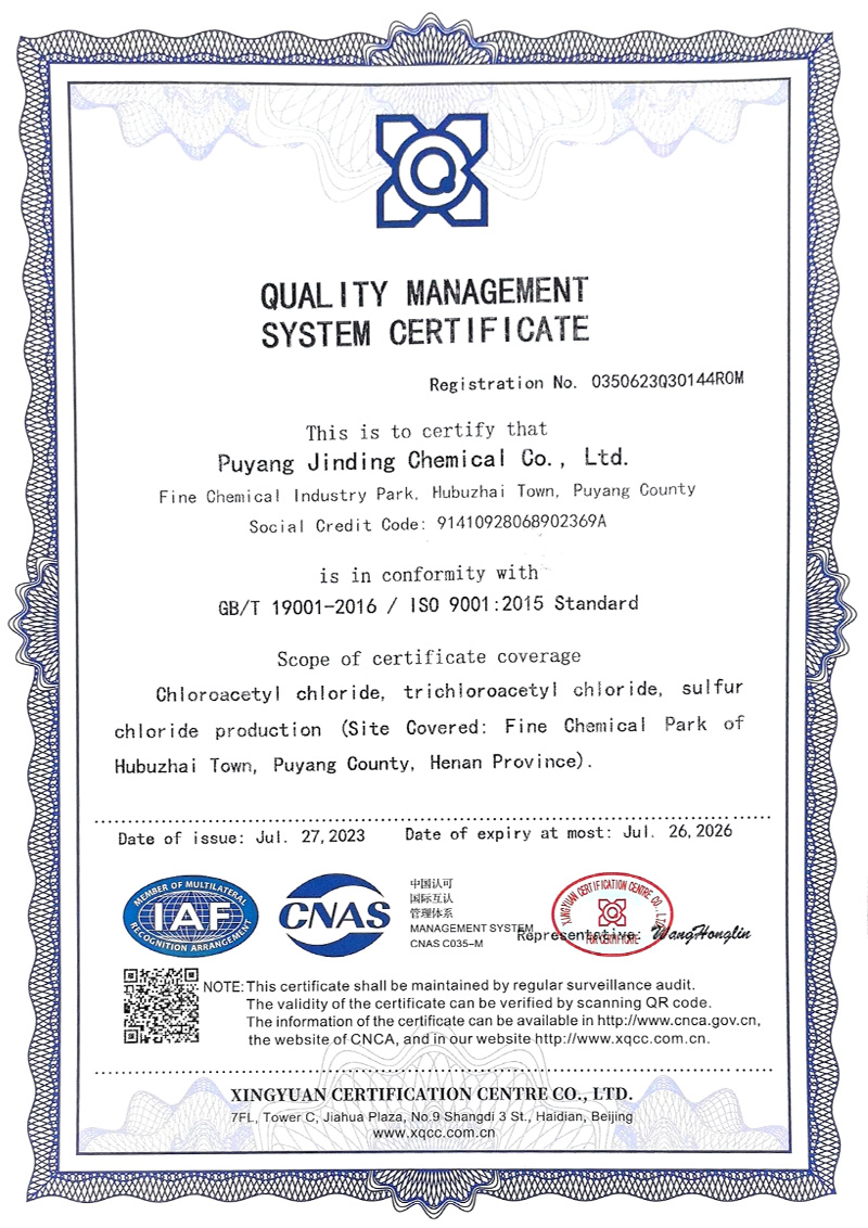 濮陽(yáng)市金鼎化工有限公司所屬其他基礎(chǔ)化學(xué)原料制造,公司主要產(chǎn)品規(guī)模為:10000噸/年氯乙酰氯、10000噸/年氯乙酸、5000噸/年氯化硫、6000噸/年氯甲醚、5000噸/年三氯乙酰氯、7000噸/年氯乙酸甲酯、3000噸/年二氯乙酸甲酯,副產(chǎn)鹽酸13000噸/年。產(chǎn)品廣泛應(yīng)用于醫(yī)藥、農(nóng)藥、染料、膠劑等行業(yè)。